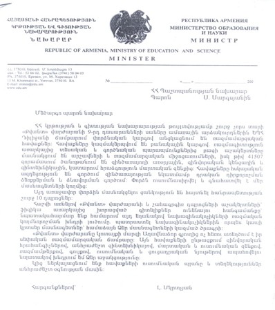08.07.2020 ՀՀ կառավարության որոշմամբ վարժարանի շրջանավարտները ստանում են հարցազրույցով բուհերի ֆիզմաթ ֆակուլտետներ ընդունվելու իրավունք:
